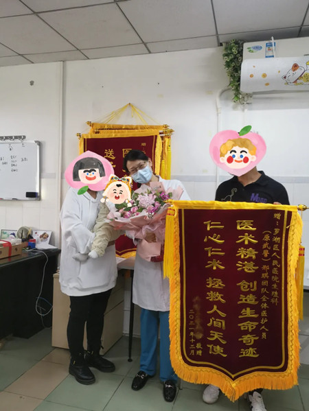 经了解,李女士一家三口这次是专程回来看望邢琪主任的,感谢邢主任及团队医护人员这一路以来的帮助,并送上锦旗「医术精湛创造生命奇迹,仁心仁术拯救人间天使」。他们说:”医术如此精湛、品德如此高尚的医生值得被更多的人知道,大家要多来找她问诊。“